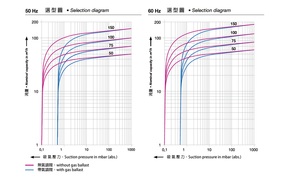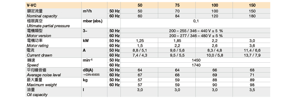 油潤滑旋片式真空泵,流量從50至180m³/hr,極限真空0.1mbar(絕對值)。