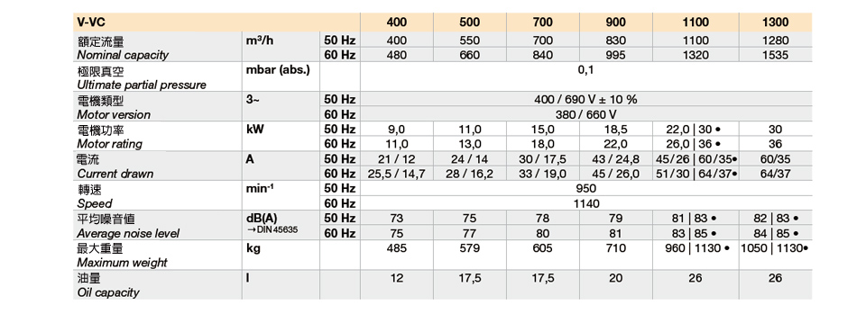 油潤滑旋片式真空泵,流量從400至1535m³/hr,極限真空0.1mbar(絕對值)。
