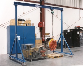 GORBEL's mobile door cranes (also known as gantry cranes) are a cost-effective material handling solution with adjustable height profiles and fixed building heights.